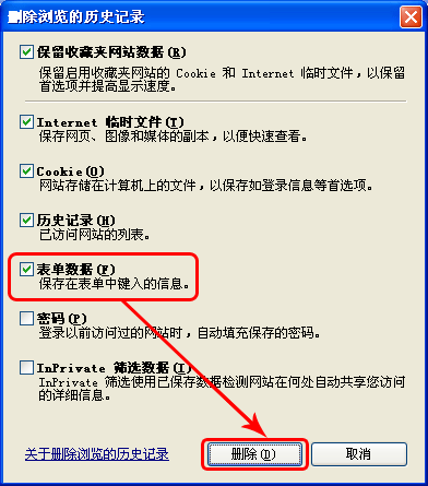 3、在弹出窗口中,勾选 表单数据 ,然后点击删除按钮。