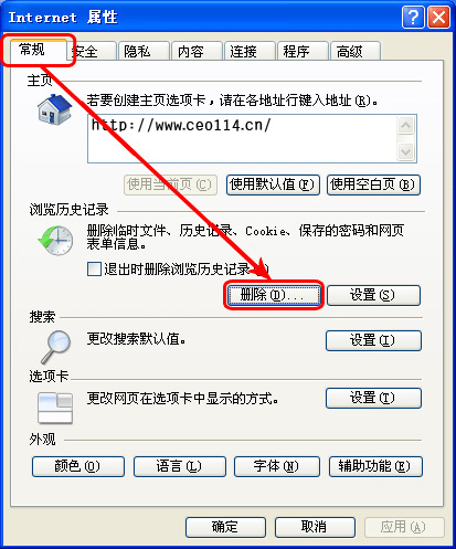 2、选择 常规 → 浏览历史记录 → 删除 。